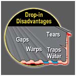 require drilled holes to be installed. Drop-ins typically trap water and debris